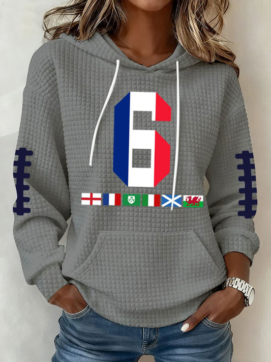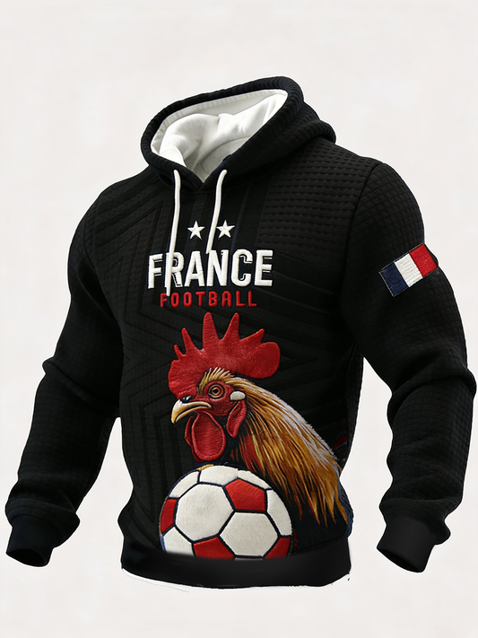Rétro Français Coq Drapeau Patchwork Waffle Weave Casual Hoodie