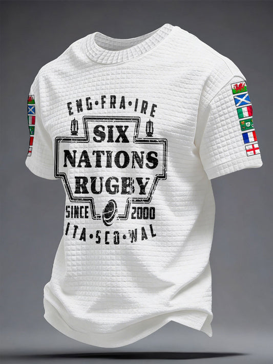 6 Nations Rugby Art Imprimé Waffle Tops Homme
