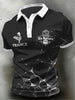 Polo décontracté en jersey patchwork noir à imprimé rugby français pour hommes