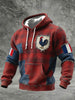 Rétro Français Coq Check Patchwork Waffle-Weave Casual Hoodie