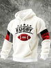 Sweat-shirt à capuche blanc cassé à patchwork imprimé simili-polaire pour homme, style rugby
