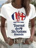 T-shirt décontracté à imprimé brodé France vs Angleterre Rugby pour femme