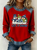 Women's Vintage Christmas Snowman Art Casual Waffle-Weave Top