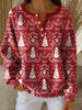 Women's Vintage Christmas Snowman Christmas Tree Art Print Long-sleeve Sweater